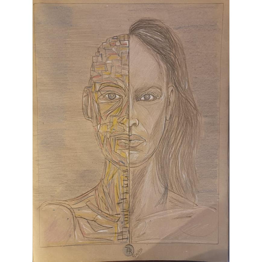 Questa opera cattura la trasformazione di una nuova realta' nell'era dell'intelligenza artificiale.