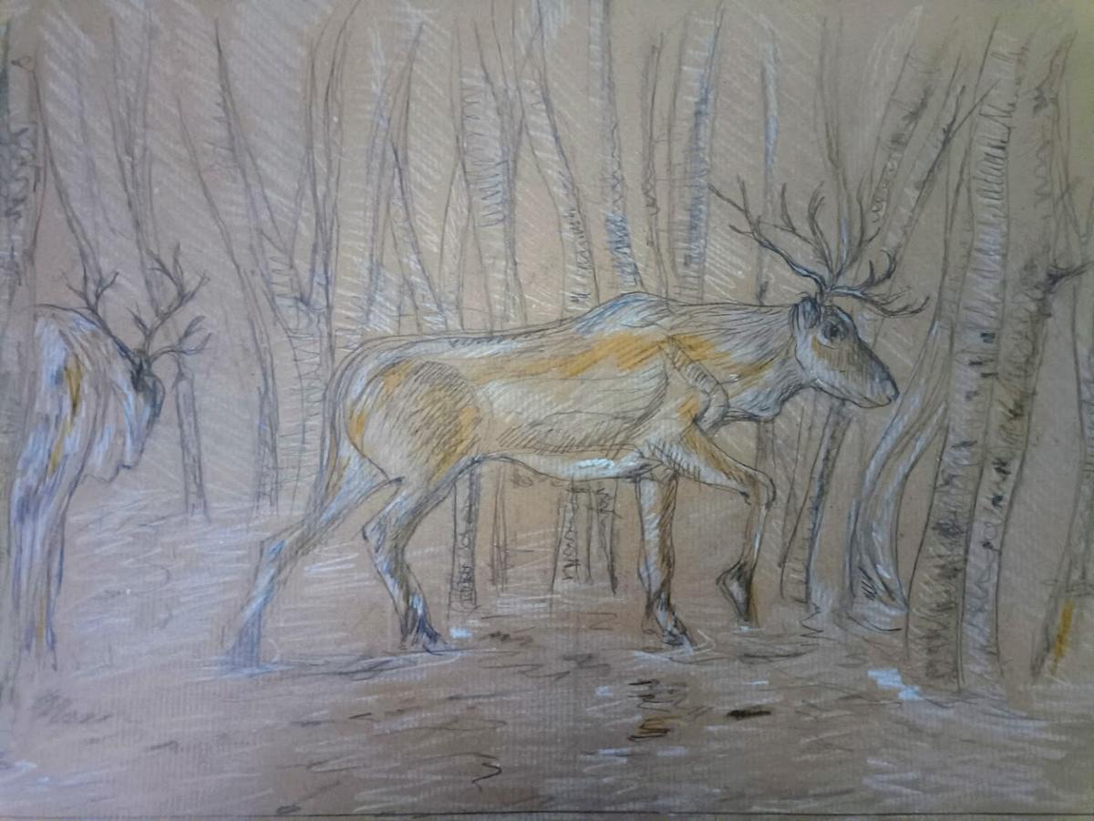 matite colorate, carta marrone, 2025