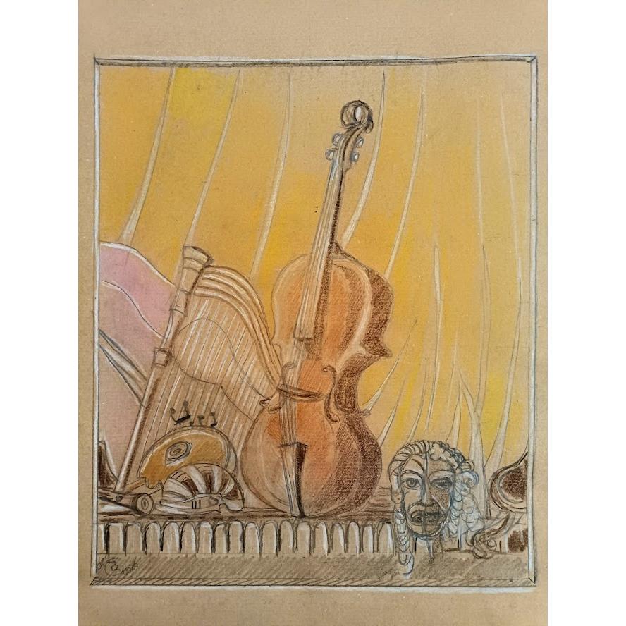 Between the curtain and the ancient mask, a string vibrates and the heart communicates ; violin and arp in a sweet concert, in the cave the mistery becomes more revealed.
